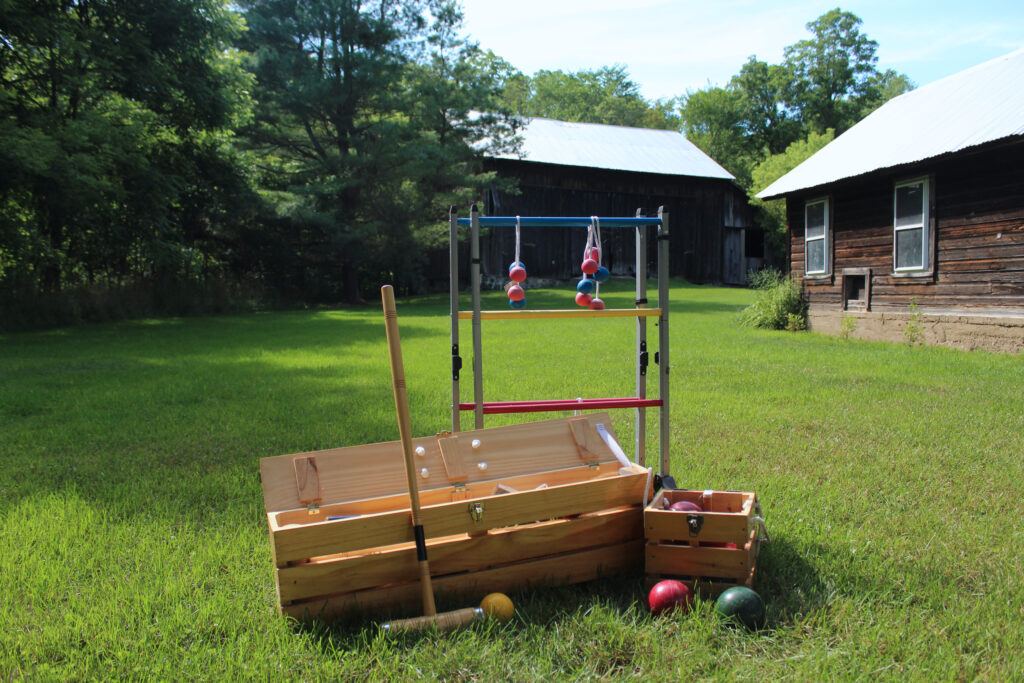- Yard games (bocce ball, horseshoes, croquette, ladder ball, yard checkers, and Jarts)