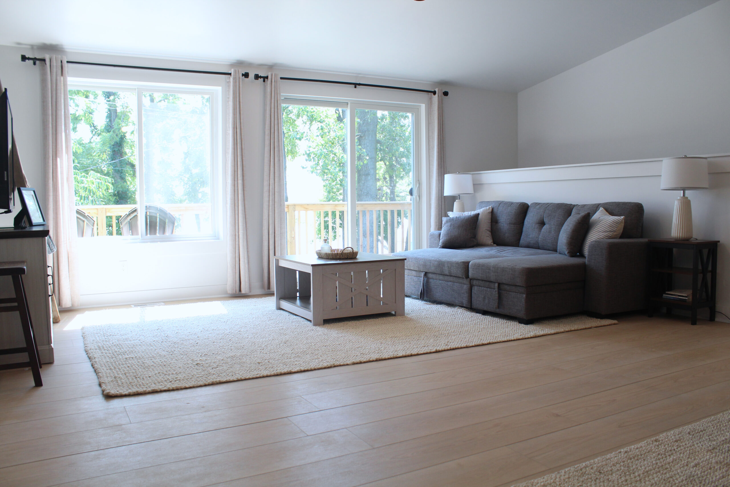 Need additional sleeping space? The couch is also a sofa bed that can sleep an additional two people. In total, the Lake Barndominium can comfortably sleep six people.